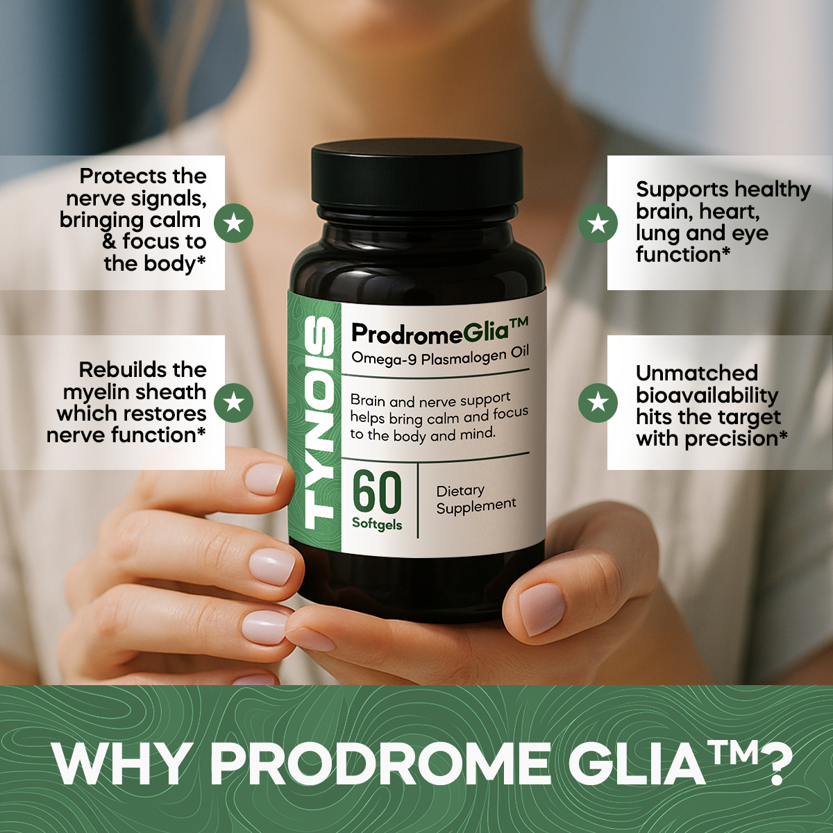 That's where ProdromeGlia™ steps in. It delivers these vital molecules directly to where they are needed most, allowing you to maintain optimal health and vitality.