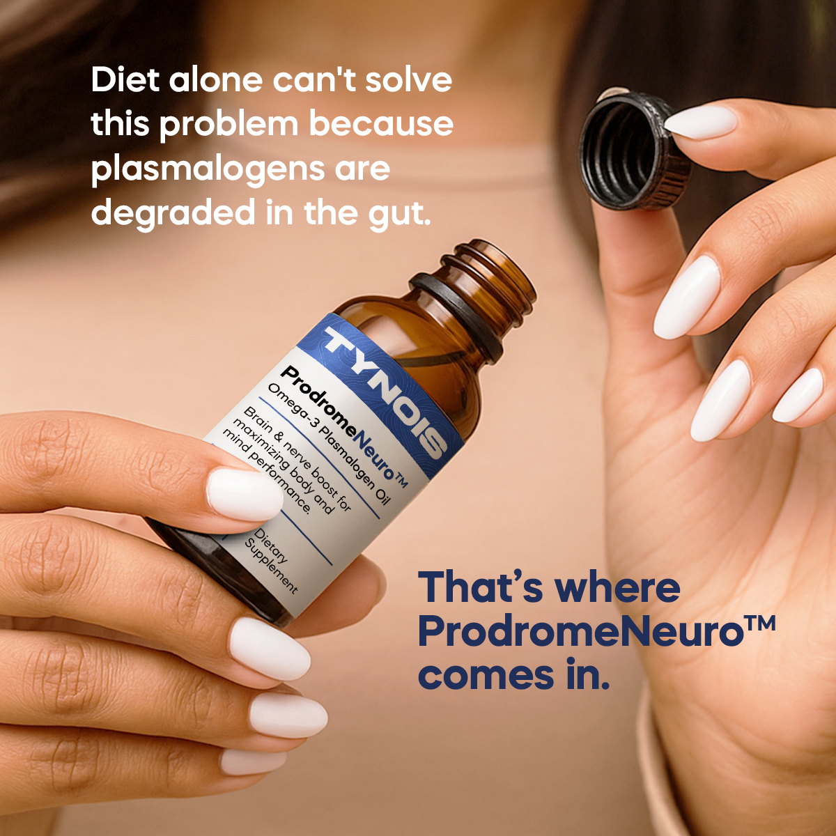 That’s where ProdromeNeuro™ comes in. It provides a bioavailable omega-3 plasmalogen precursor, helping to restore and optimize plasmalogen levels in the brain, supporting cognitive function and long-term neurological health.